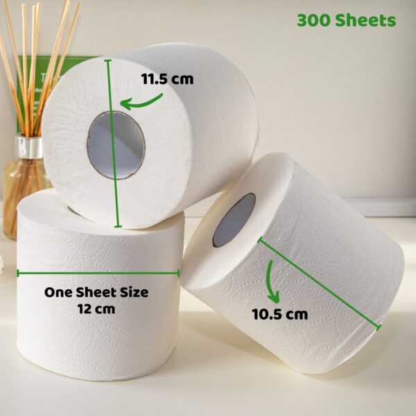 - LONG LASTING: Each roll contains good size 300 sheets with 3 layers. Not 300 Tiny Squares Sheets. (More sheets vs other brands = Best value)